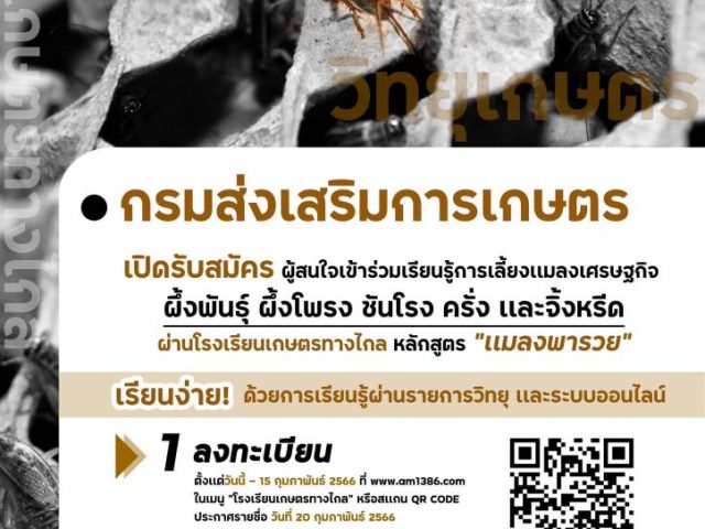 ไม่มีหมวดหมู่กรมส่งเสริมการเกษตร รับสมัครผู้สนใจ เรียนรู้ด้านการเลี้ยงแมลงเศรษฐกิจ ผ่านโรงเรียนเกษตรทางไกล หลักสูตร “แมลงพารวย”