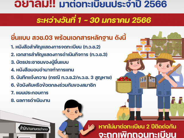 ไม่มีหมวดหมู่อย่าลืม! มาต่อทะเบียนวิสาหกิจชุมชนและเครือข่ายวิสาหกิจชุมชนประจำปี 2566
