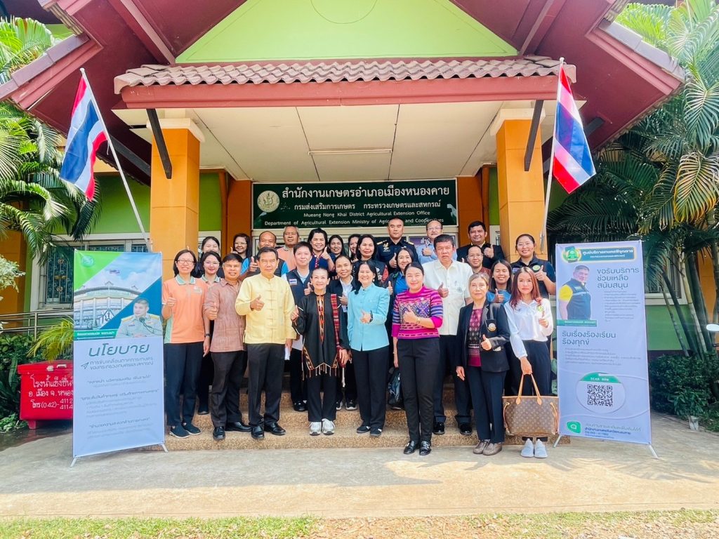 ช่วงบ่ายผู้ตรวจราชการกระทรวงเกษตรและสหกรณ์ เขตตรวจราชการที่ 10 พร้อมคณะฯ ได้ลงพื้นที่ตรวจเยี่ยมศูนย์บริการประชาชนภาคการเกษตร (ศูนย์พิรุณราช) จังหวัดหนองคาย ณ สำนักงานเกษตรอำเภอเมืองหนองคาย จังหวัดหนองคาย เพื่อมอบนโยบายในการปฏิบัติงาน ให้บุคลากรในสังกัดกระทรวงเกษตรและสหกรณ์ได้นำไปปรับใช้ในการปฏิบัติงานได้อย่างมีประสิทธิภาพต่อไป จากนั้นได้ลงพื้นที่ตรวจติดตามงานตามนโยบายสำคัญของกระทรวงเกษตรและสหกรณ์ นโยบายการผลักดันสินค้าเกษตรและบริการมูลค่าสูง 1 ท้องถิ่น 1 สินค้าเกษตร มูลค่าสูง จุดที่ 1 ยุทธนาฟาร์ม (ปลานิลในกระชังแม่น้ำโขง) และจุดที่ 2 กลุ่มแม่บ้านเกษตรกร บ้านกองนาง ตำบลกองนาง อำเภอท่าบ่อ จังหวัดหนองคาย